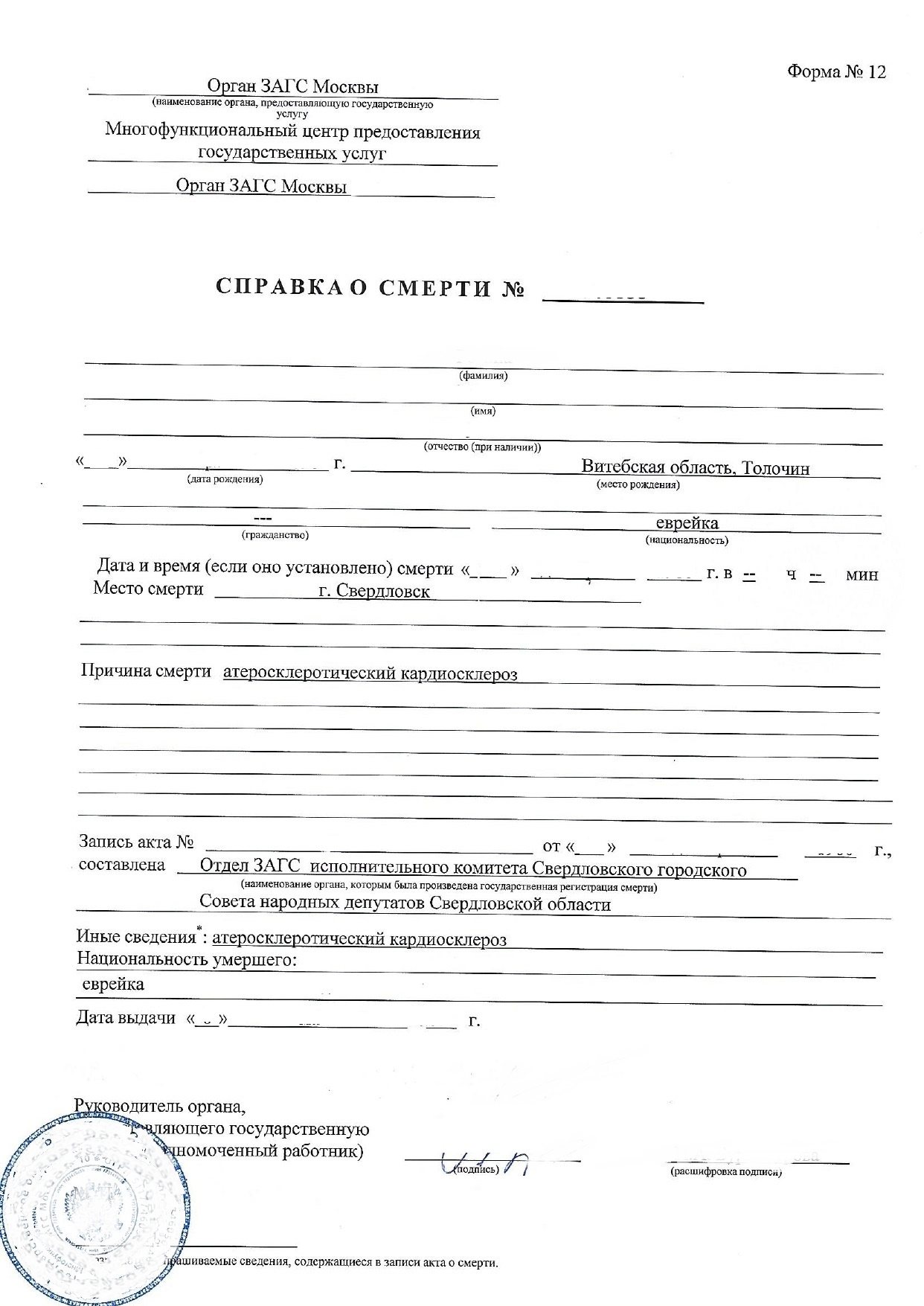Именно эти качества делают нас первым выбором для тех, кто хочет купить справку формы № 12 (о смерти) без лишних проблем и бюрократии.